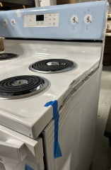 BRAND NEW white Whirlpool range stove. Slight damage to right side; see photo